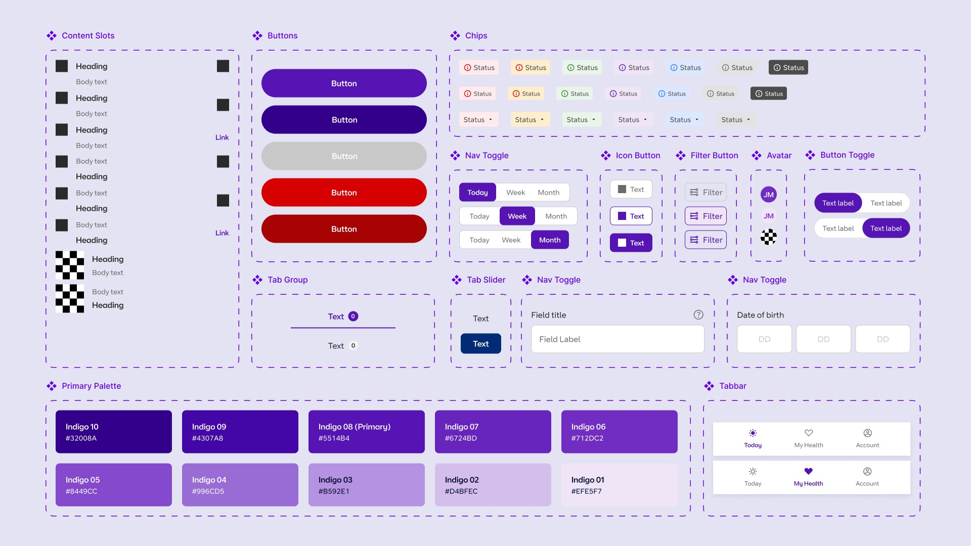 Design system developed to support long-term consistency and scale across healthcare products. Built to be adopted, extended, and maintained by internal design teams.